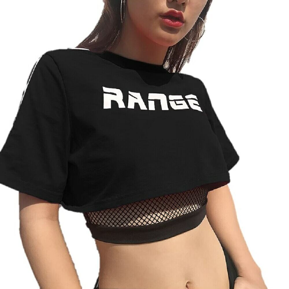 短い丈のへそ出しスタイルのダンス衣装に伸縮性のあるおしゃれで可愛いトップス