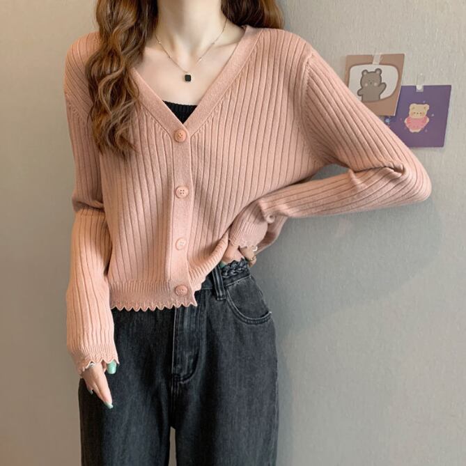 【海外からの取り寄せ】2025年新作秋冬 リブニットカーディガン トップス セーター レイヤード 重ね着 前開き Vネック カジュアル #[cardigan222_13800]【送料込み】【251012】