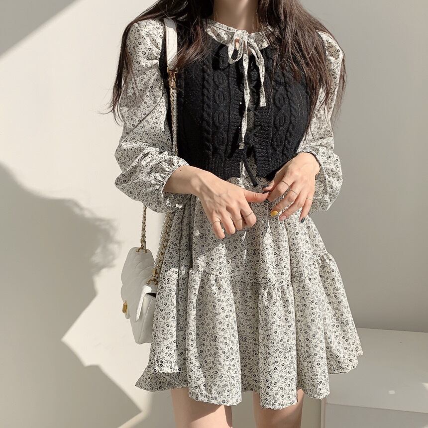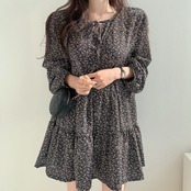 【海外からの取り寄せ】2025新作 レディース ワンピース クルーネックリボン 花柄 可愛い ティアードシフォン ふんわり ゆったり #[onepiece442_36800]【送料込み】【250928】