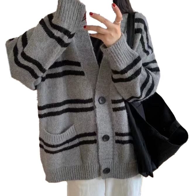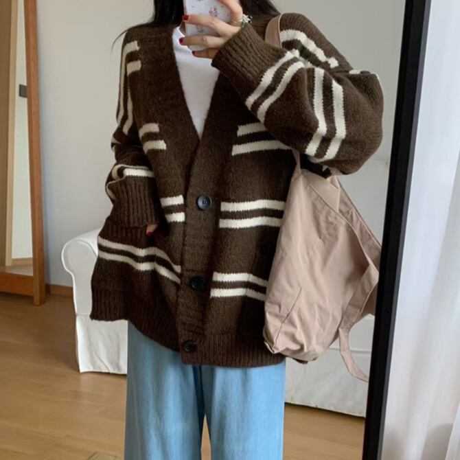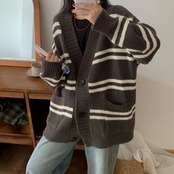 【海外からの取り寄せ】2025秋冬新作 カーディガン ボーダー柄 羽織り ニット ロング ゆったり オーバーサイズ トップス セーター #[cardigan220_19800]【送料込み】【250928】
