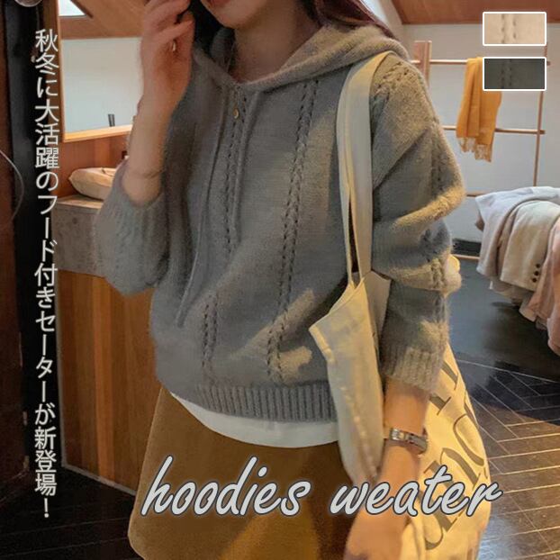 【海外からの取り寄せ】 新作 ニット セーター プルオーバー フード付きトップス ざっくり ショート丈 ふわふわ #[tops696_19800]【送料込み】【250928】