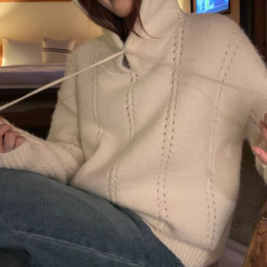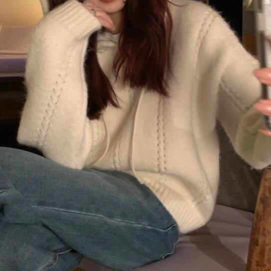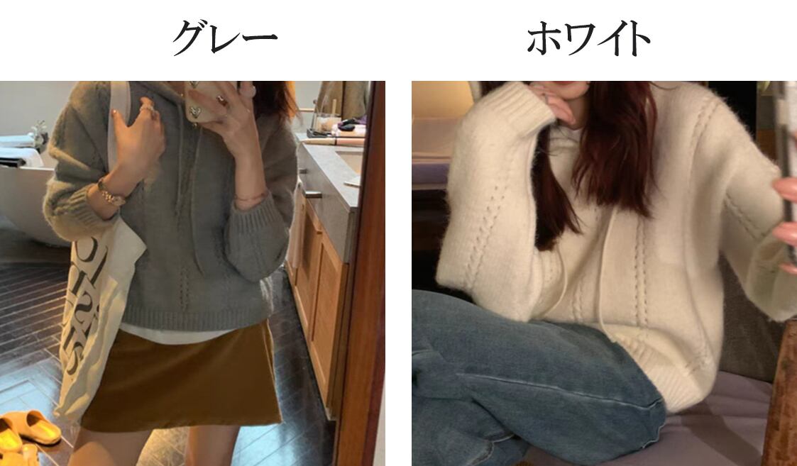 ・フェミニンな女性らしい雰囲気を引き出してくれる立体感のあるフード付きセーター。