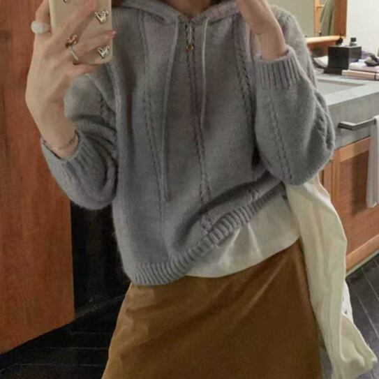 ざっくり感が可愛くこなれ感を演出 フード付きセーター