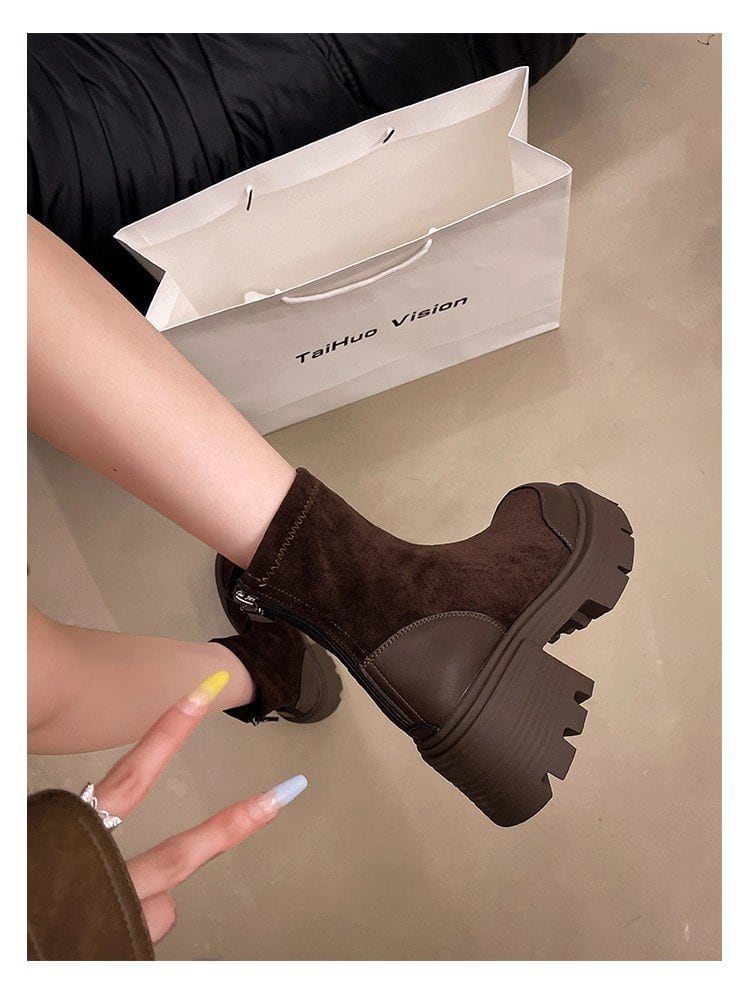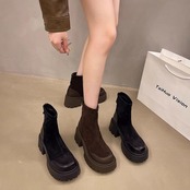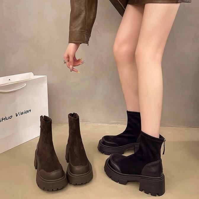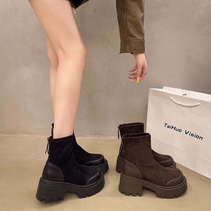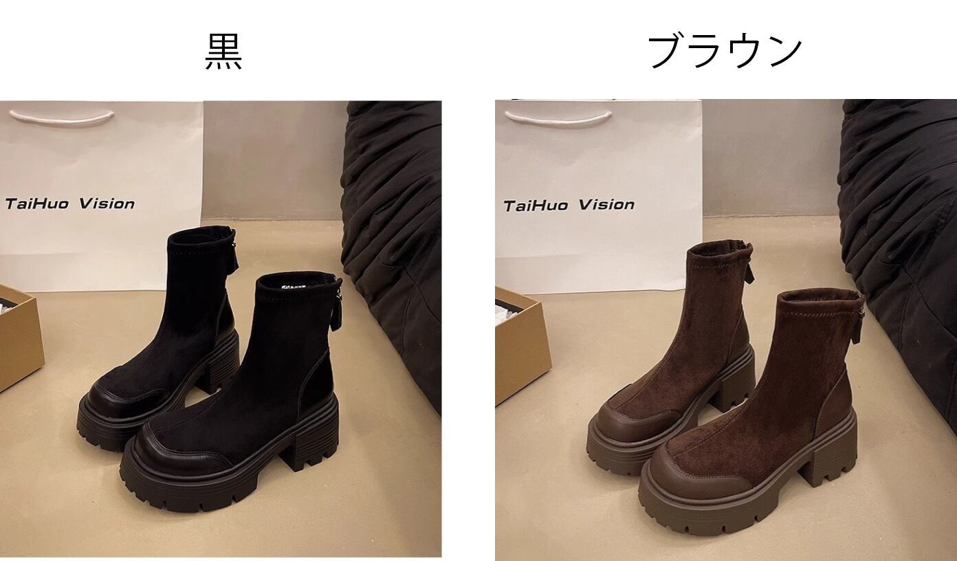 【海外からの取り寄せ】2025新作 レディース 靴 ブーツ ミドル ラウンドトゥ スエード調 厚底 脚長 スタイルアップ 黒 ブラウン #[boots382_23800]【送料込み】【251003】