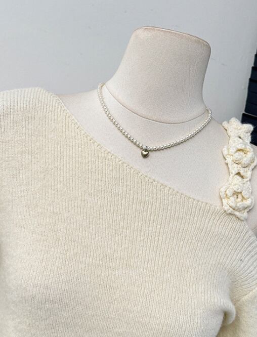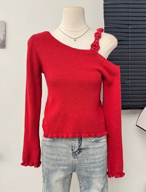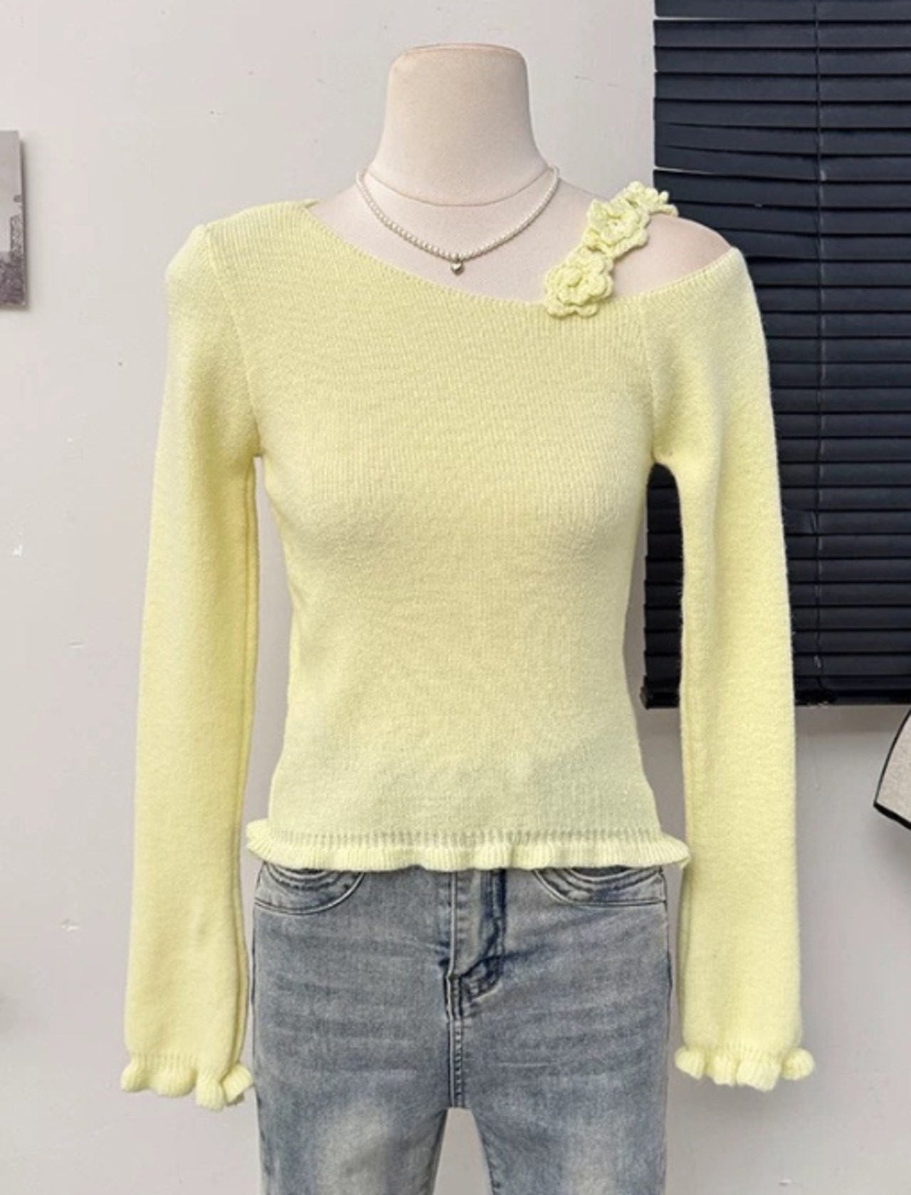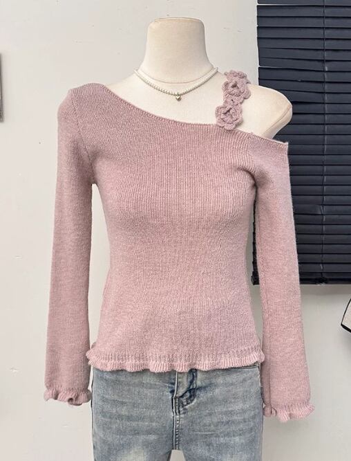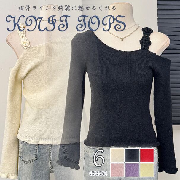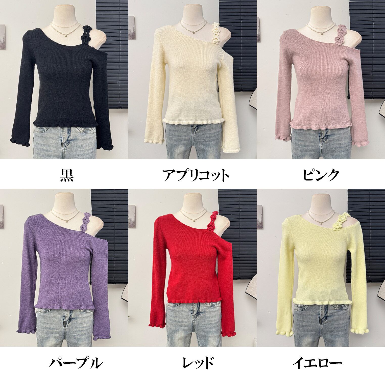【海外からの取り寄せ】2025新作 オフショルダーニットトップス レディース 肩見せ ショート丈 春 夏 無地 サマー フラワー #[tops698_15800]【送料込み】【251003】