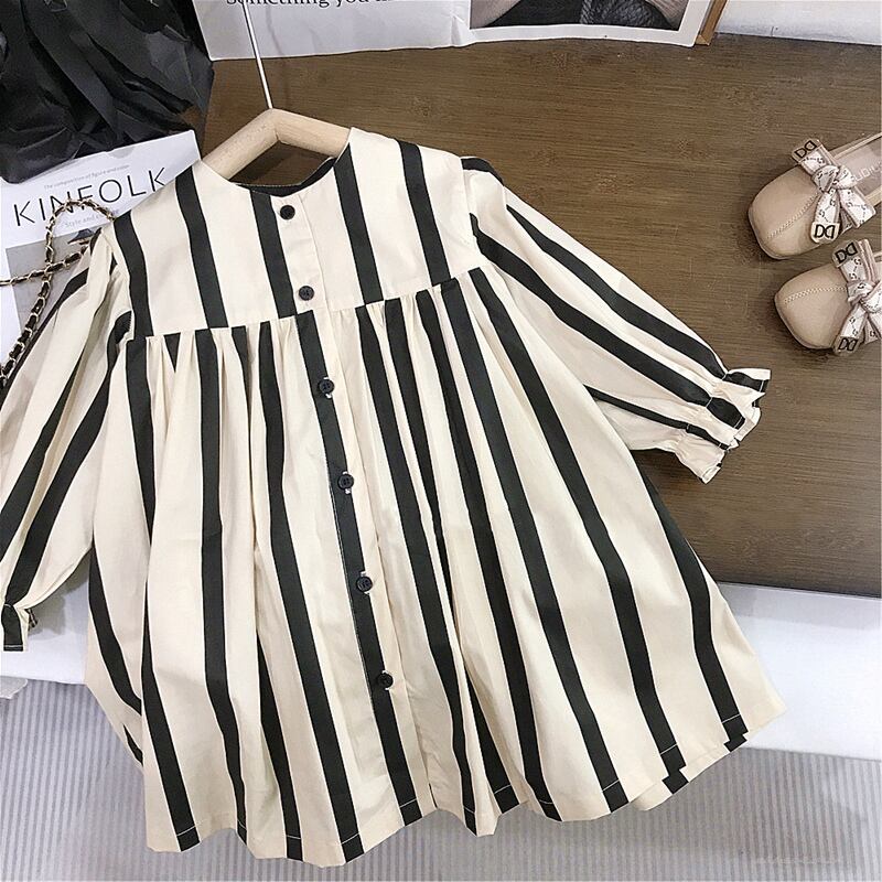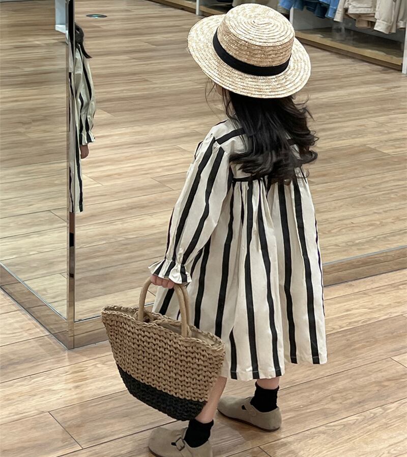 【海外からの取り寄せ】ins 秋新作 子供服 クルーネック ストライプ柄 長袖 ワンピース 可愛い 女の子 おしゃれ ドレス #[ckd1095205_20800]【送料込み】【251016】