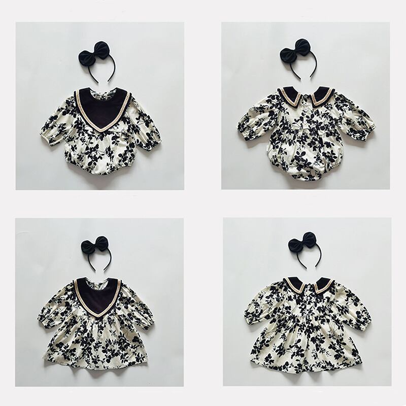 【海外からの取り寄せ】ins 秋新作 子供服 姉妹お揃い カチューシャ付き 花柄 ロンパース ワンピース 可愛い 2タイプ #[ckd1095202_14900]【送料込み】【251016】