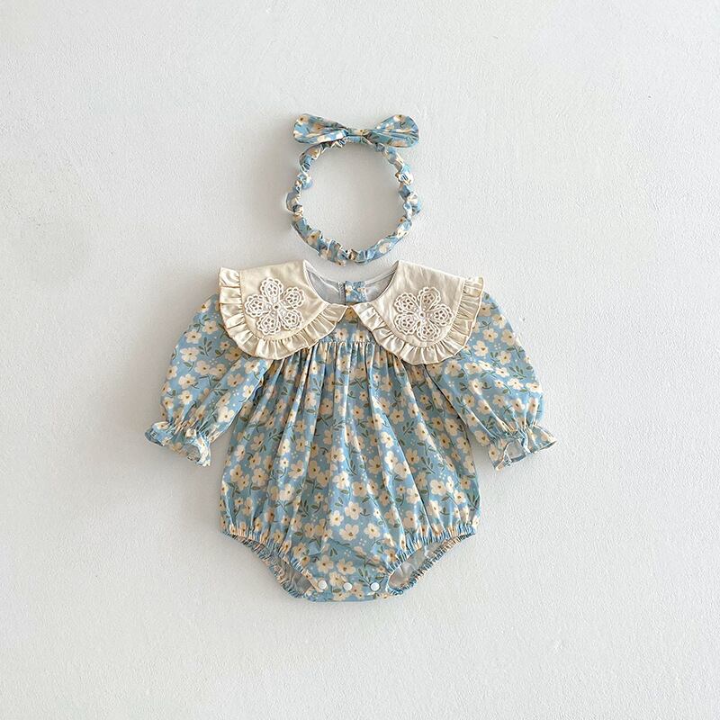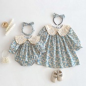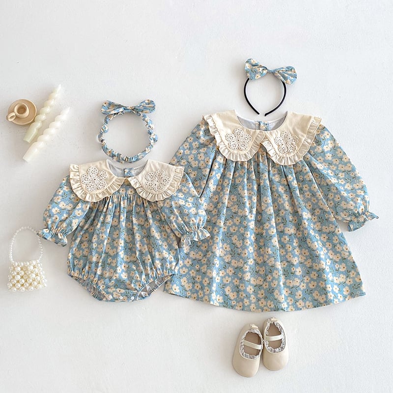 【海外からの取り寄せ】2025秋新作 子供服 姉妹お揃い ヘアバンド付き 花柄 長袖 ロンパース ワンピース 可愛い 2タイプ #[ckd1095198_18600]【送料込み】【251012】