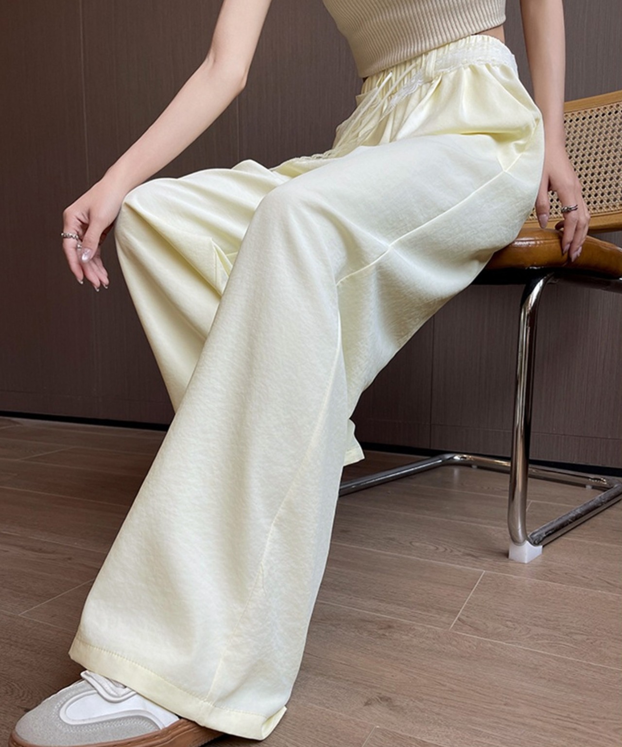 イージー ストレートパンツ レディースボトムス ハイウエスト 着やせ 美脚脚長ロングパンツ 薄手 お洒落セミワイドパンツ