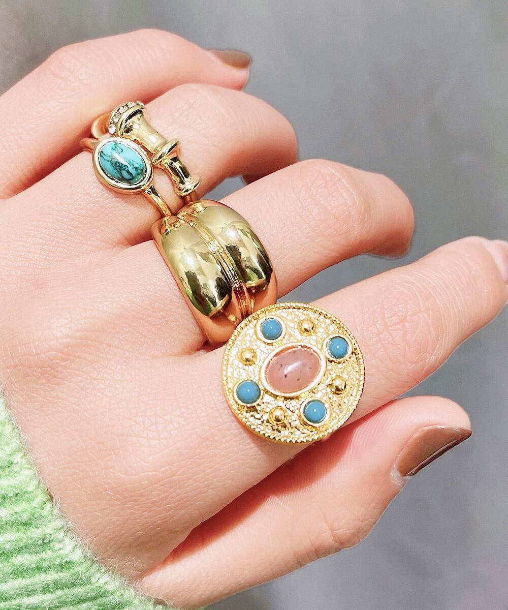 ターコイズリング 4ピースリング レディース 重ね付け 韓国風 アクセサリー おしゃれファッション小物 カジュアル