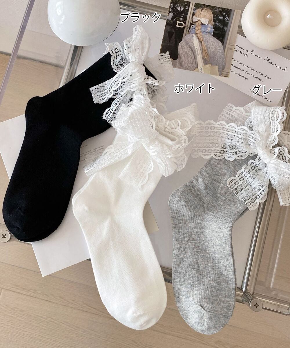 【日本倉庫からの発送】 レースリボン ソックス レディース 靴下 #[88CXH-116_6600]【送料込み】【251003】