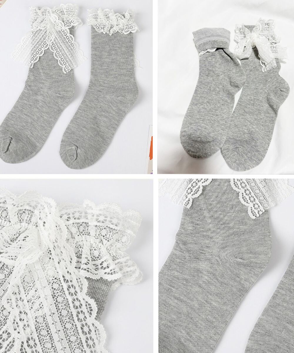 繊細なレースと大きめのリボンがアクセントのガーリーなソックス。