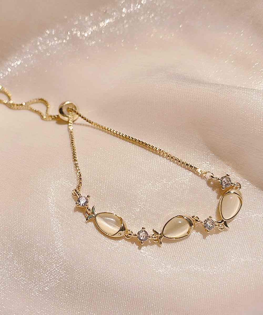 小魚モチーフとラインストーンで飾られたチェーンブレスレット。