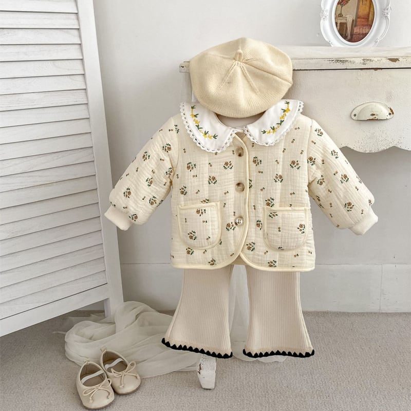 【海外からの取り寄せ】ins 秋冬新作 ベビー服 Vネック 中綿 ジャケット 防寒 コート 花柄 ドット柄 あたっか アウター #[ckd1092812_23700]【送料込み】【250923】