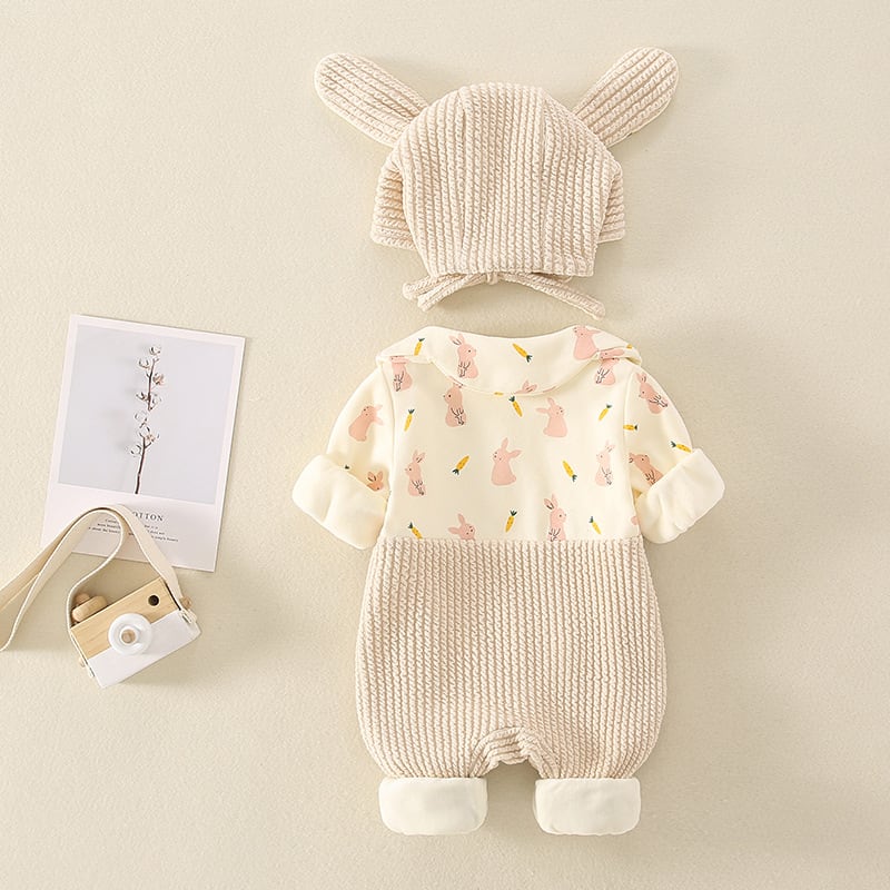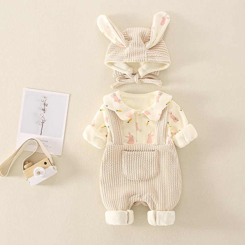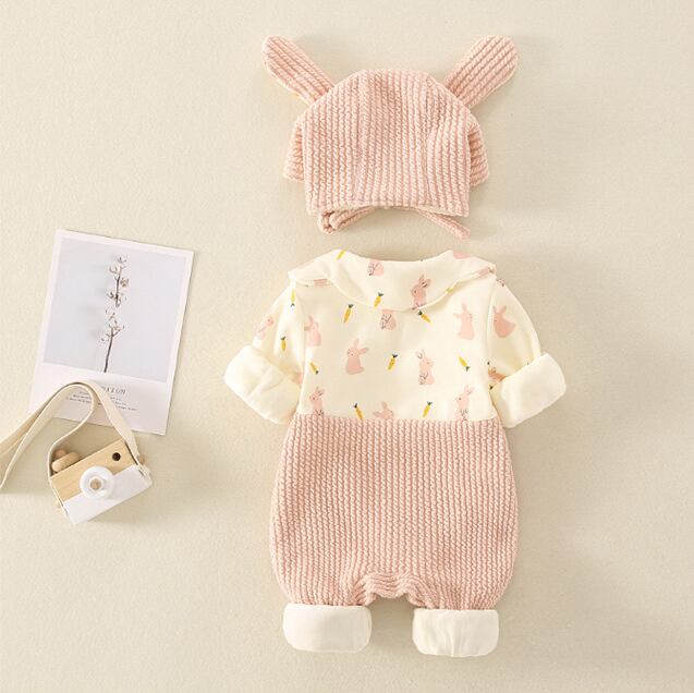 【海外からの取り寄せ】ins 冬新作 ベビー服 裏起毛 フェイクレイヤード ロンパース 帽子付き 66-90cm 子供服 可愛い #[ckd1091193_32800]【送料込み】【250924】