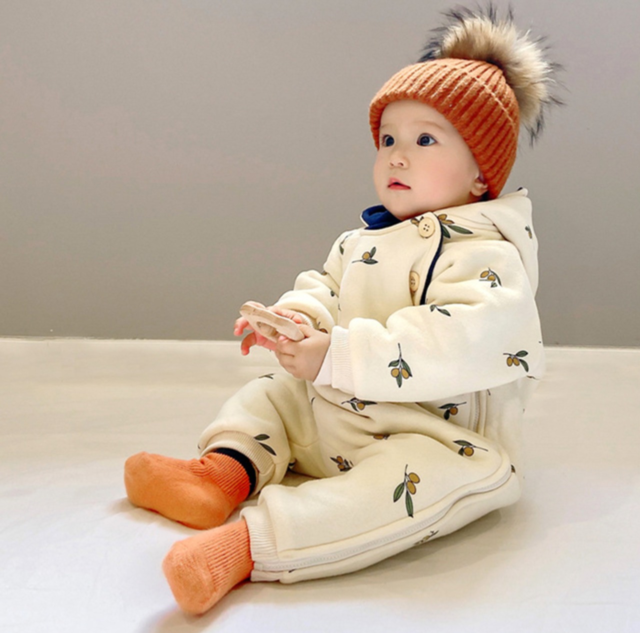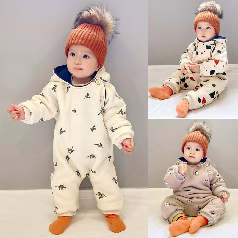 【海外からの取り寄せ】ins 秋冬新作 ベビー服 厚手 ロンパース 連体服 帽子 2層構造 暖かい 66-90cm 子供服 お出かけ #[ckd1091112_30100]【送料込み】【250924】