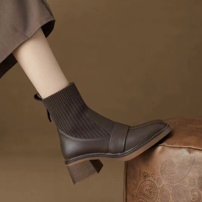 【海外からの取り寄せ】 2025秋冬 ブーツ 靴 ショートブーツ スタイルアップ チャンキーヒール 脚長 スクエアトゥ #[boots384_27800]【送料込み】【251003】