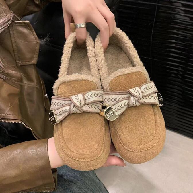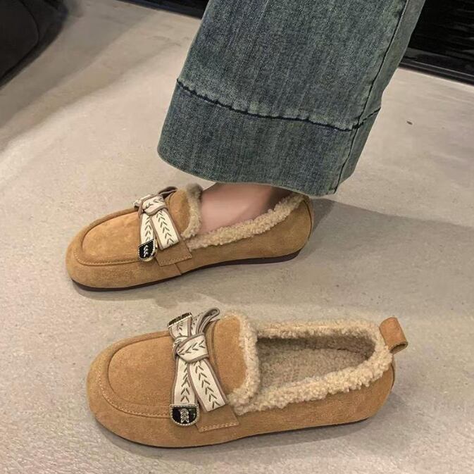 【海外からの取り寄せ】2025新作 レディース スリッポン 靴 ボア スエード調 モカシン ローファー ふわふわ もこもこ 防寒 保温 #[sneaker369_19800]【送料込み】【251003】