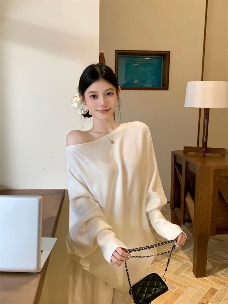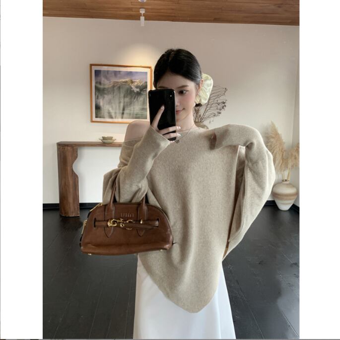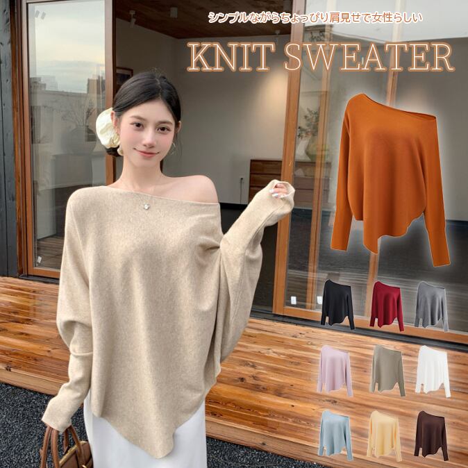【海外からの取り寄せ】2025新作 ニットセーター レディース 肩見せ オフショルダートップス 無地 大人カジュアル #[tops700_23800]【送料込み】【251003】