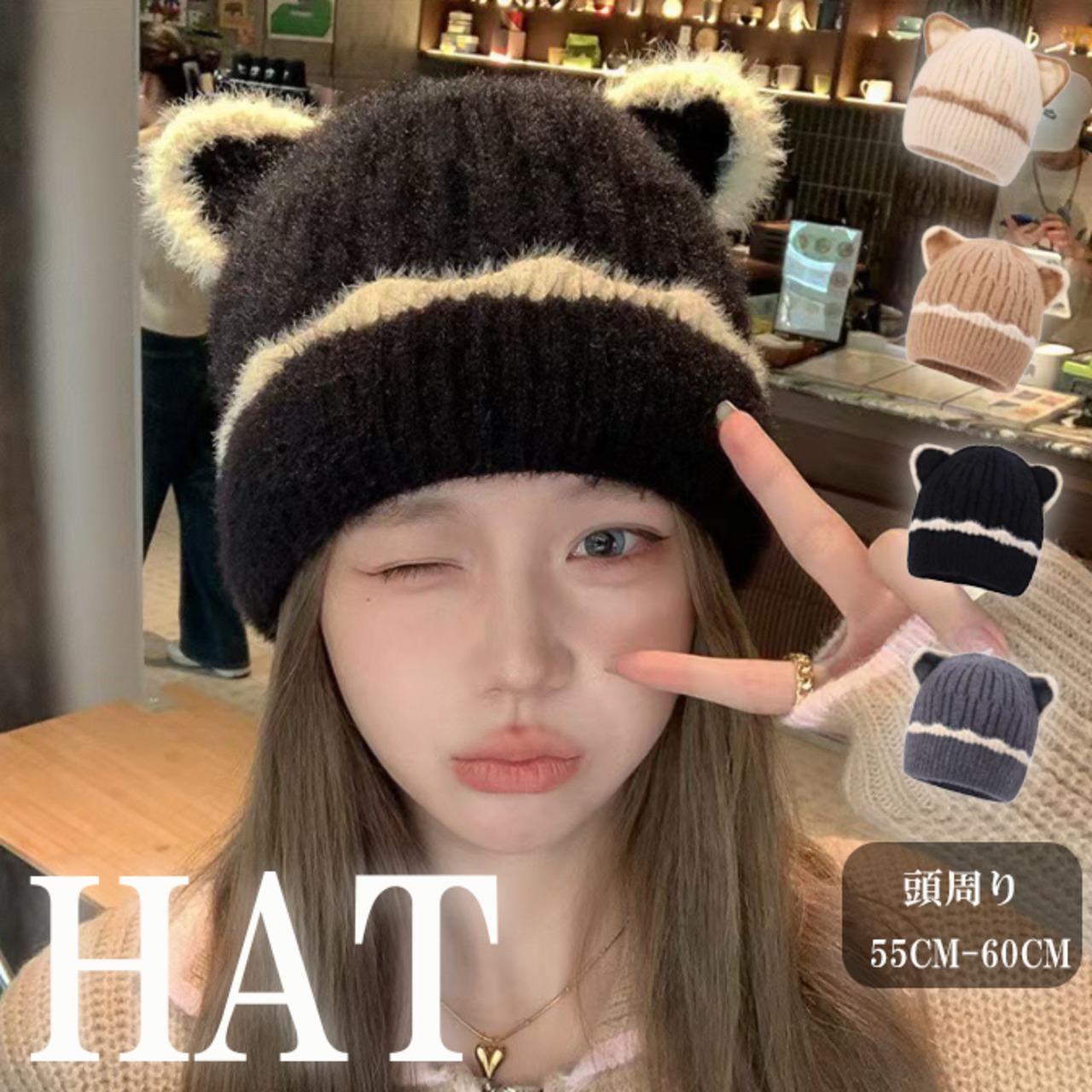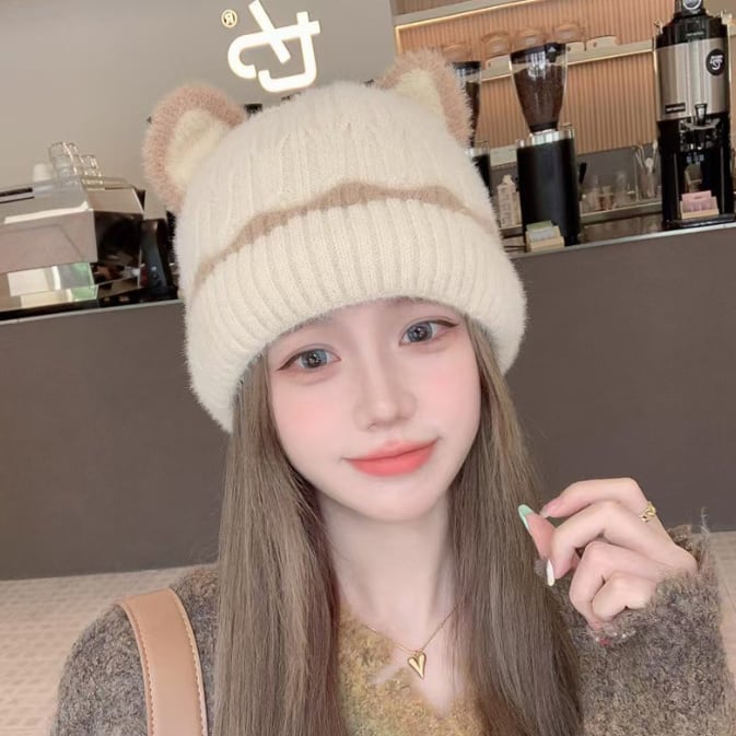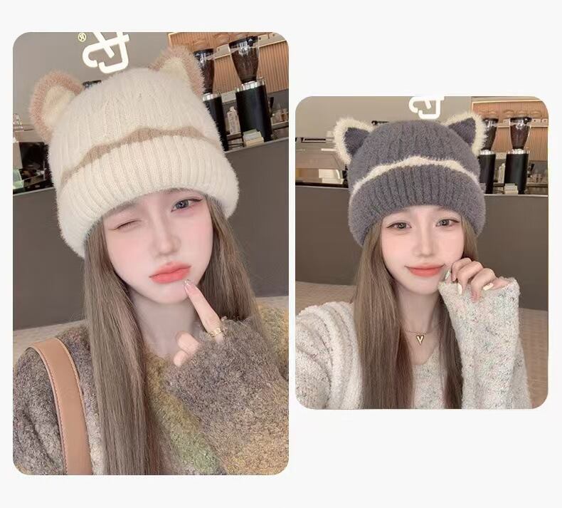 【海外からの取り寄せ】2025新作 レディース 帽子 ニットハット もこもこ ふわふわ フェイクファー 保温 小顔効果 猫耳 #[hat445_6800]【送料込み】【251003】