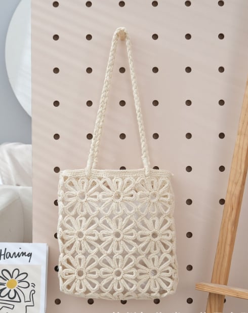 【海外からの取り寄せ】【即納】新作 トートバッグ 編み込み フラワー メッシュ ざっくり編み 可愛い ネットバッグ 夏バッグ #[bag1725zk_25800]【送料込み】【251003】