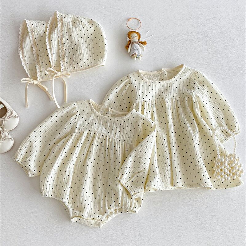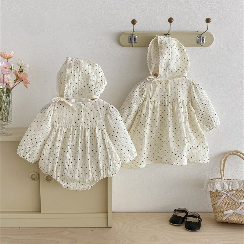 【海外からの取り寄せ】2025秋新作 子供服 姉妹服 選べる2タイプ 長袖 水玉 ロンパース ワンピース 可愛い 帽子付き #[ckd1095217_15400]【送料込み】【251022】