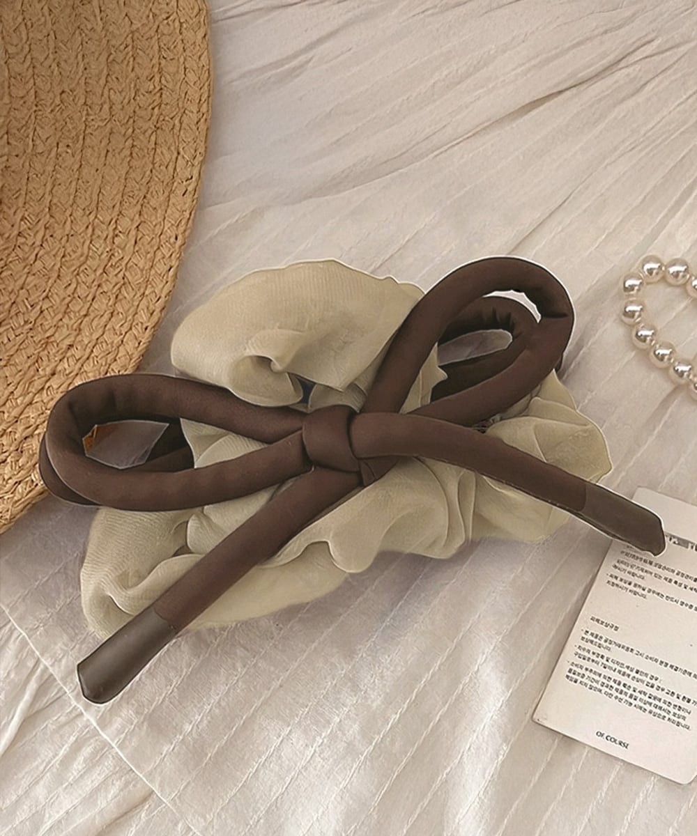 エレガントなシアー素材とリボンが上品な印象を与えるヘアアクセサリー。