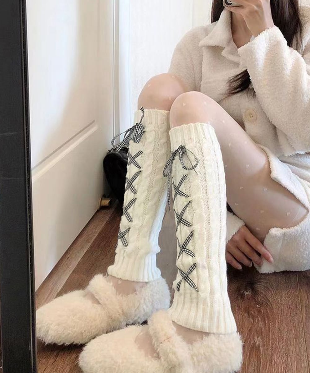【日本倉庫からの発送】 レースアップニットレッグウォーマー暖かい #[90YT-003_6500]【送料込み】【251003】