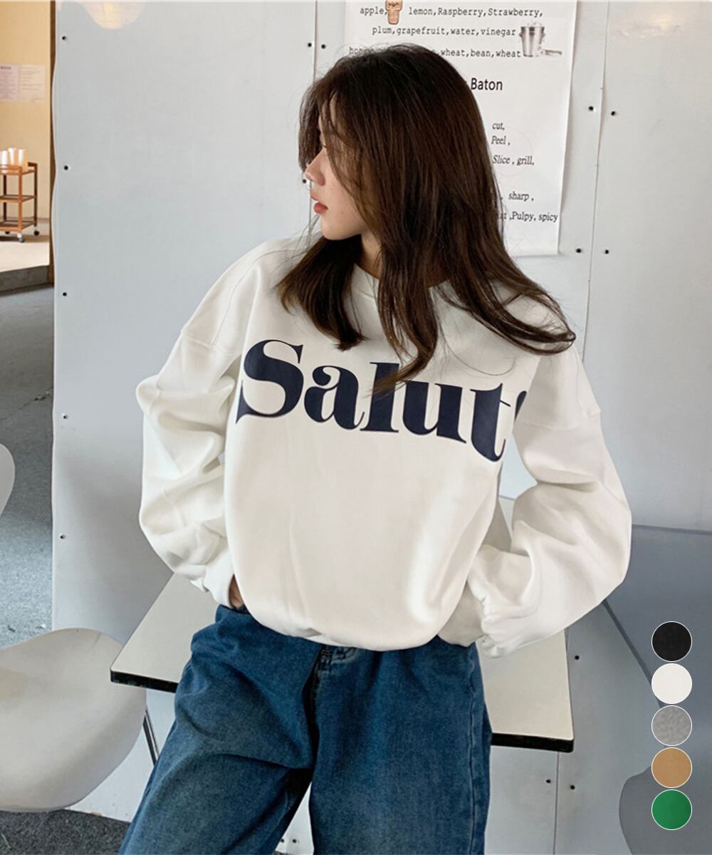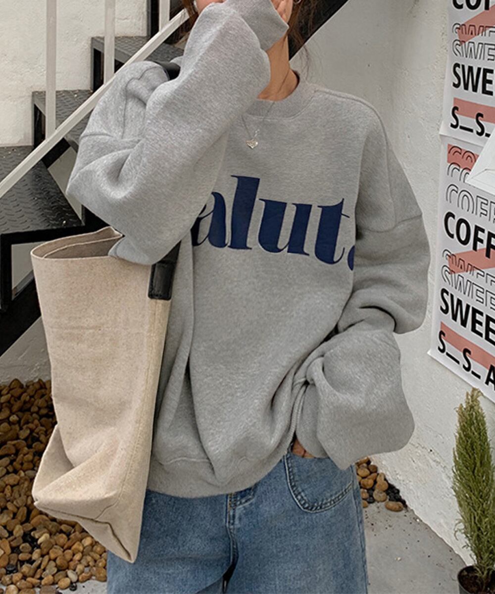 英字ロゴがシンプルながら個性的で、カジュアルにもフェミニンにも着こなせる裏起毛トレーナー。