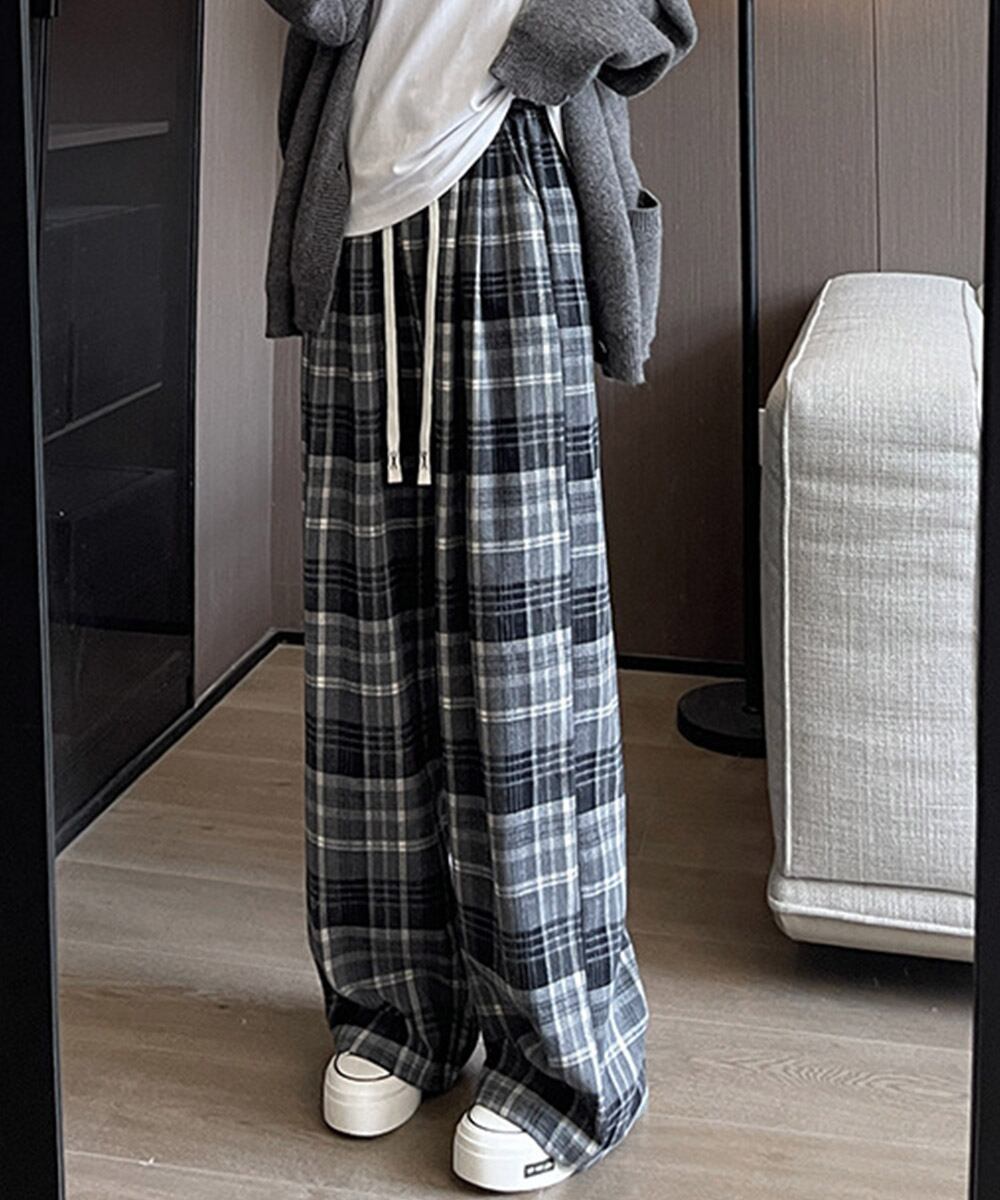 【日本倉庫からの発送】 チェック柄パンツハイウエストワイドパンツ #[21KUZI-024_25000]【送料込み】【260115】