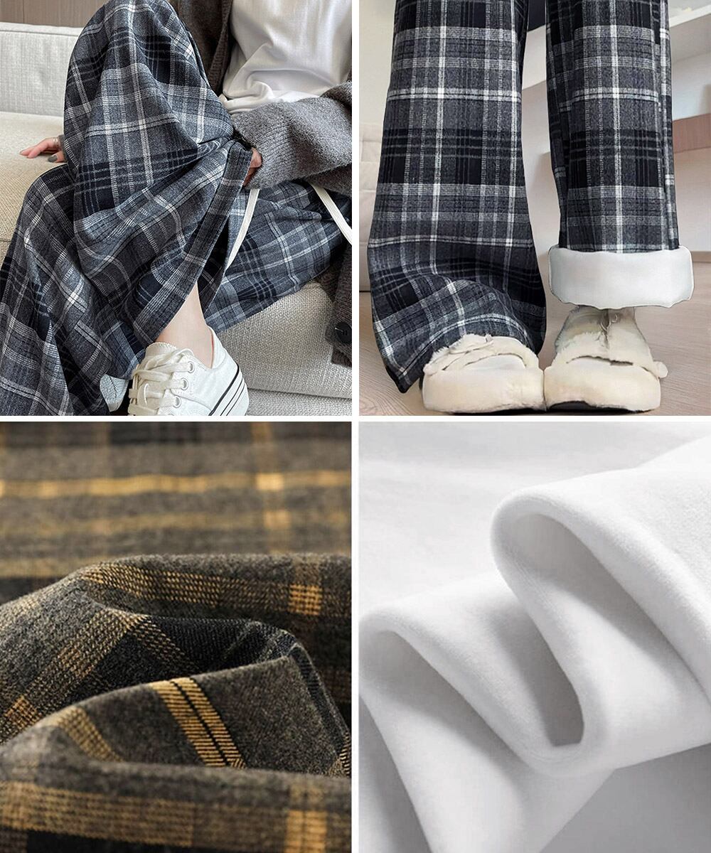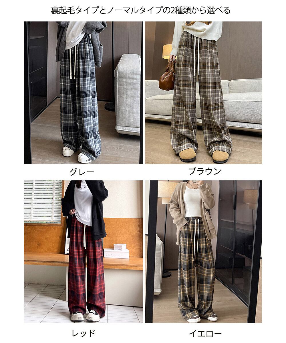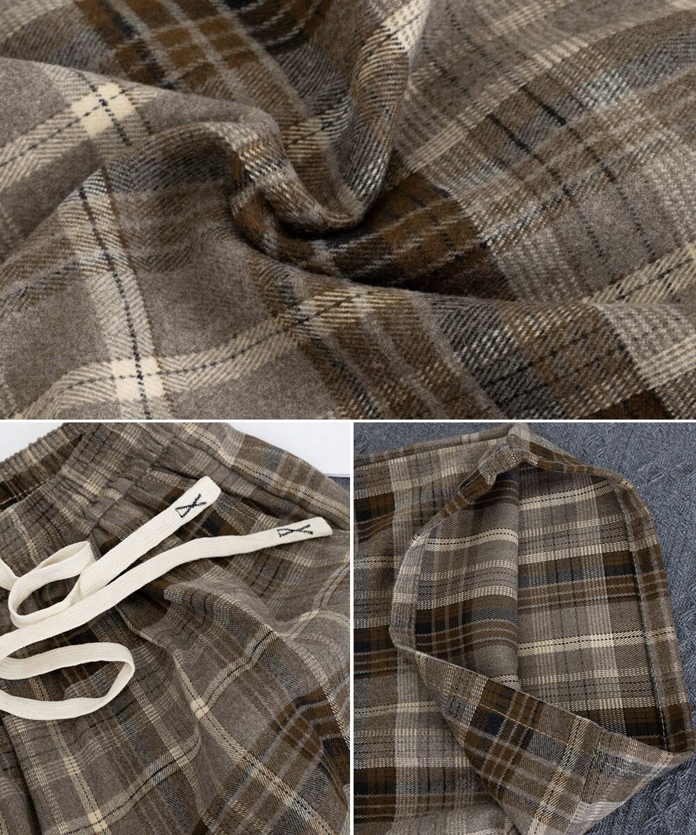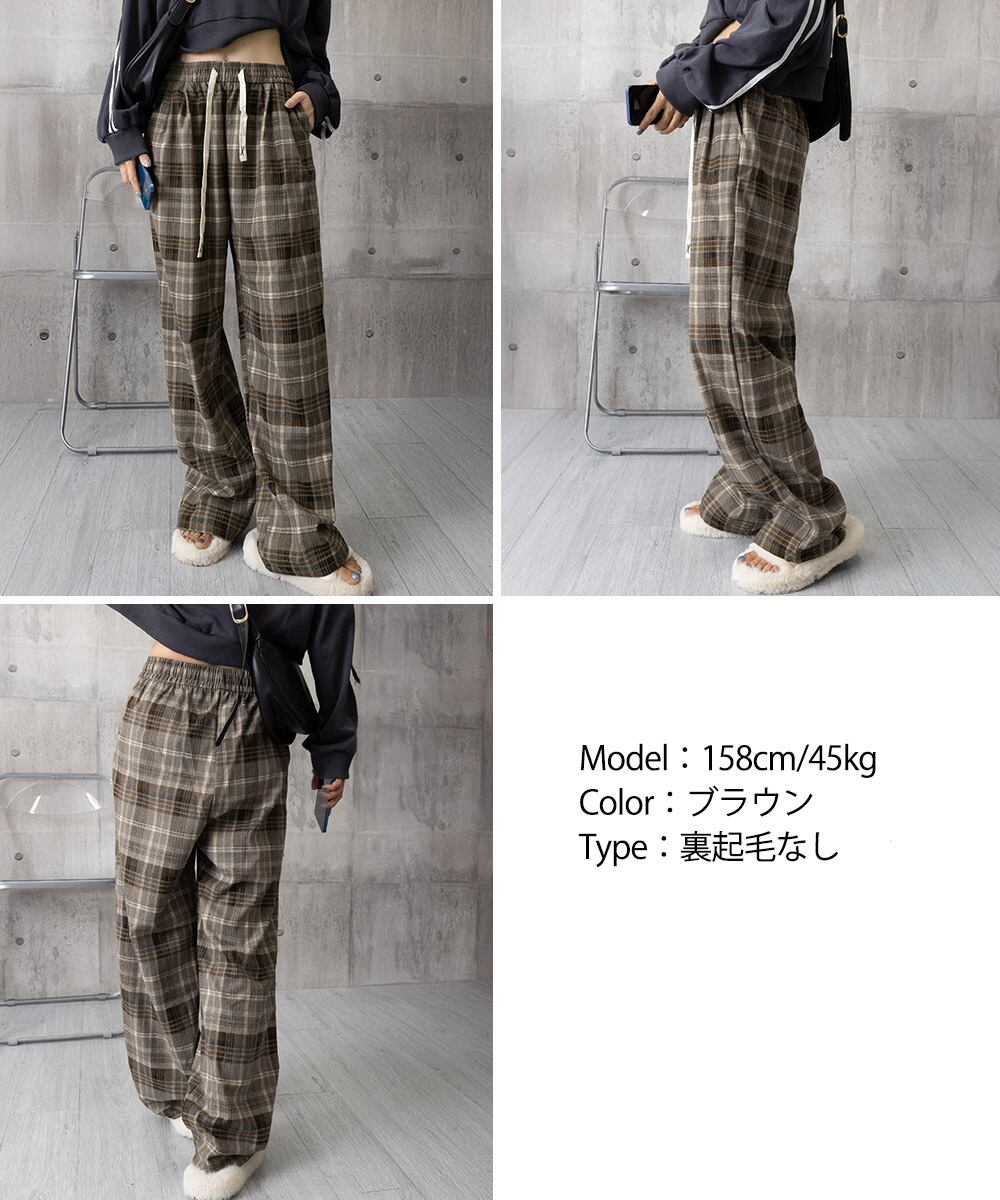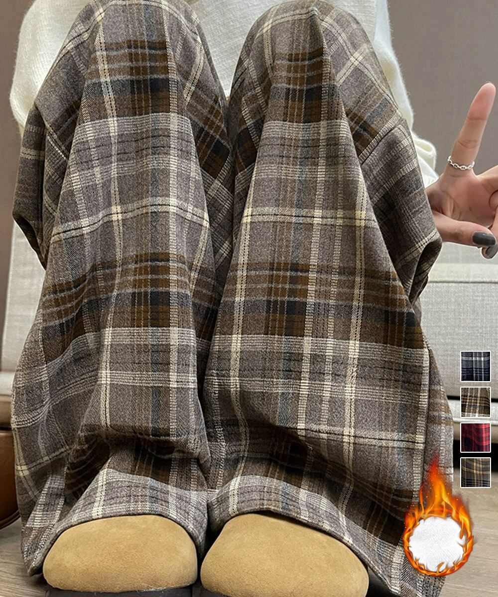 裏起毛チェックパンツ イージーパンツ 暖かリラックスパンツ 体型カバー長ズボン ルーズシルエット カジュアルパンツ韓国風