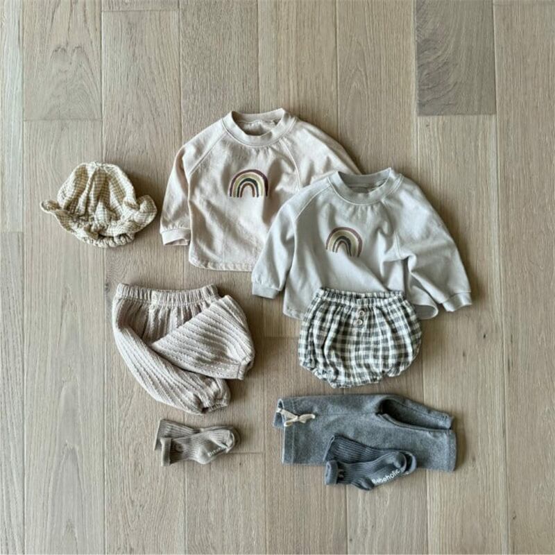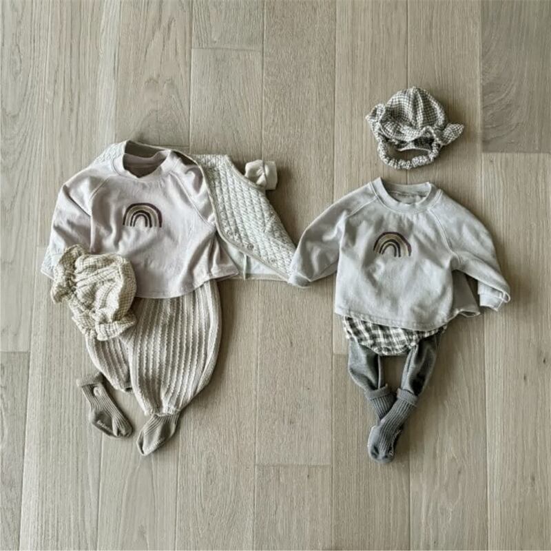 【海外からの取り寄せ】2025秋新作 子供服 ユニセックス ラグランスリーブ 長袖Tシャツ レインボー トップス 柔らか 2色 #[ckd1095225_13800]【送料込み】【251022】