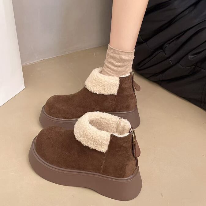 モコモコとして、足元に優しくて暖かい守りをもたらす 厚底ブーツ