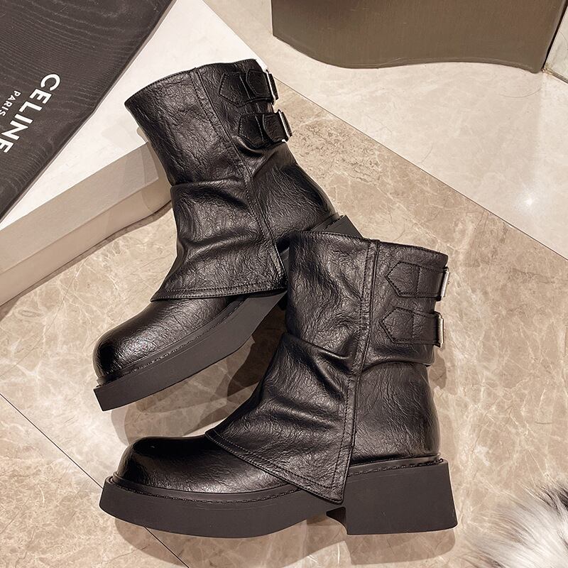 【海外からの取り寄せ】 レディース 靴 くしゅくしゅ ショートブーツ ラウンドトゥ 厚底 太ヒール ウエスタン #[boots386_23800]【送料込み】【251012】