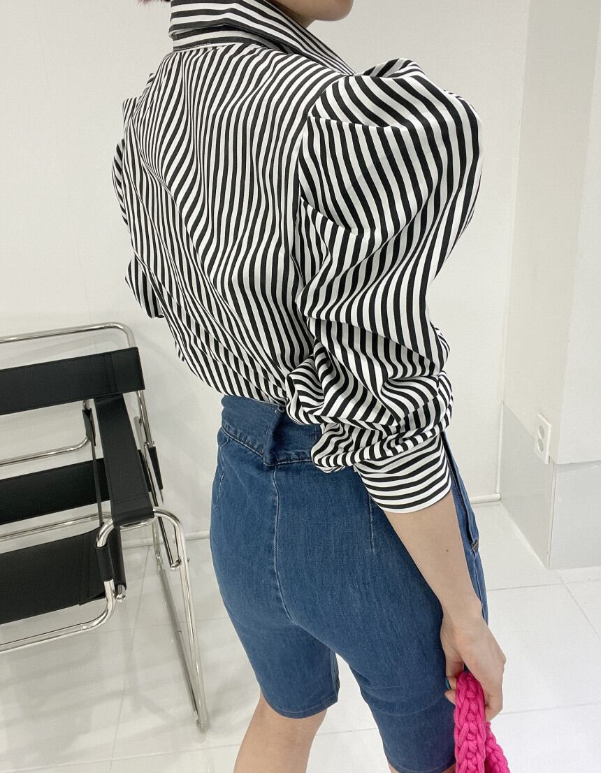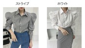 【海外からの取り寄せ】 2025新作 ストライプシャツ ブラウス トップス ボリューム袖 ふんわり袖 立ち襟 #[shirt519_31800]【送料込み】【251003】