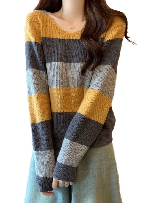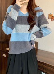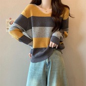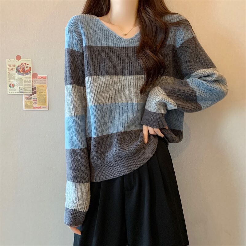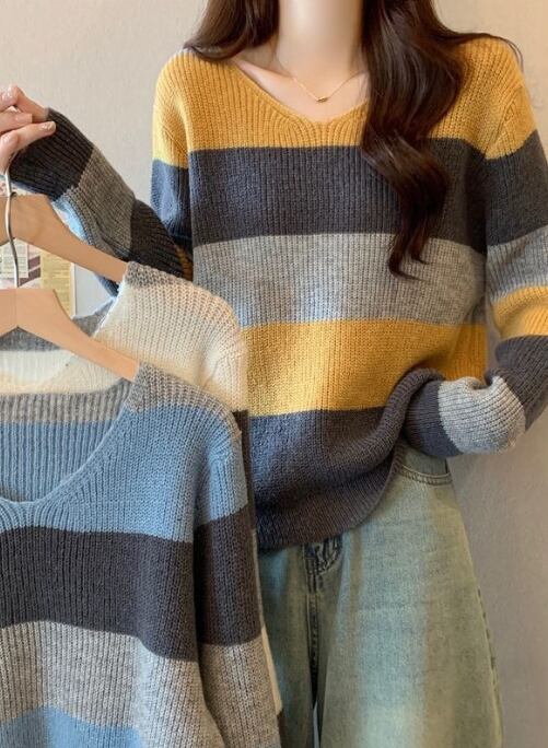 【海外からの取り寄せ】なめらか高品質 ゆるセーター 秋冬ニット Vネック 着痩せ プルオーバー ボーダー柄 トップス おしゃれ #[tops703_14800]【送料込み】【251003】