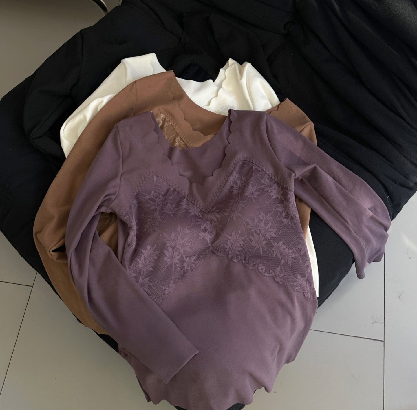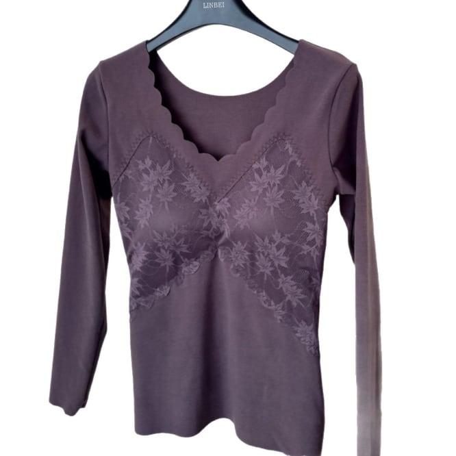 【海外からの取り寄せ】レディース インナー 下着 保温 Vネック 長袖 ストレッチ 伸縮 カットソー 切替レース 万能 あったか #[inner238_12800]【送料込み】【251003】