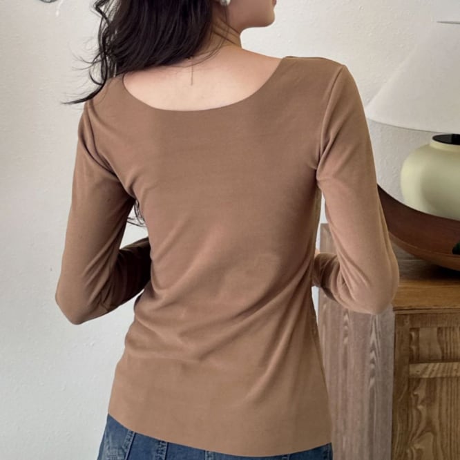 ・広めのVネックで見えにくく、デコルテをスッキリ美しく魅せます。