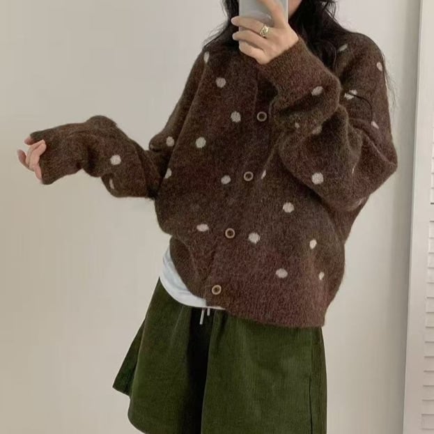 【海外からの取り寄せ】 2025新作 カーディガン トップス ドット柄 カーディガン水玉 セーター 長袖 ニット #[cardigan224_23800]【送料込み】【251003】