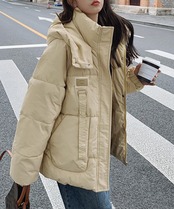 中綿コートアウター フード付きアウター ダウンコート羽織る