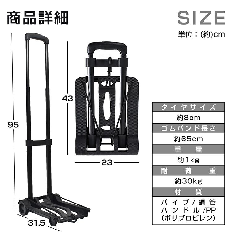 キャリーカート 折りたたみ 台車 アウトドア 耐荷30kg 軽量 頑丈 コンパクト 4輪 キャスター 荷締めゴム #[wk001_19500]【送料込み】【251004】