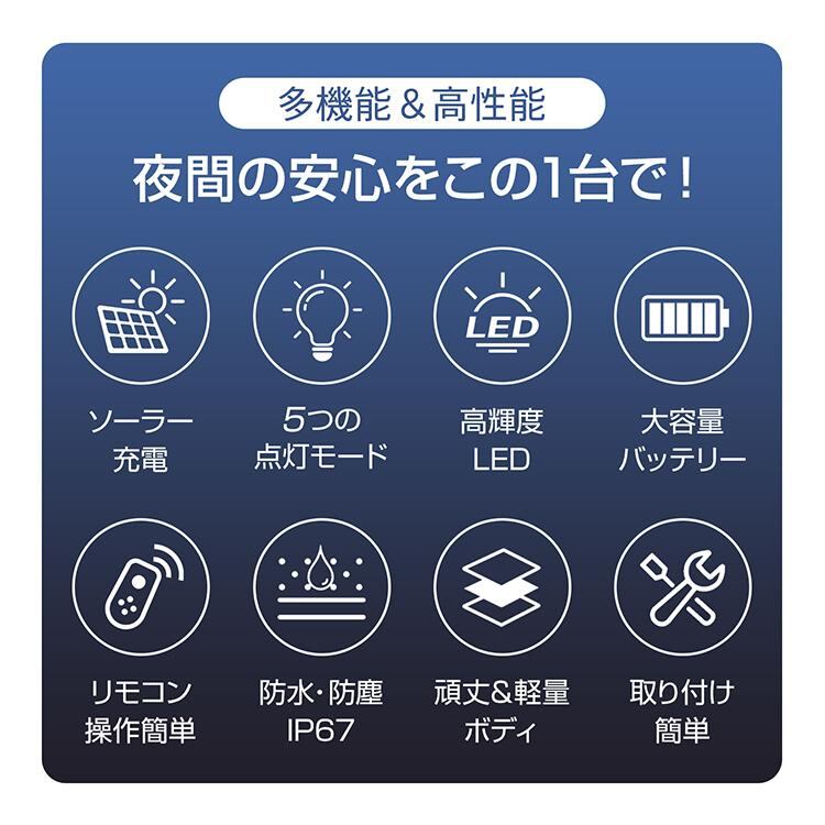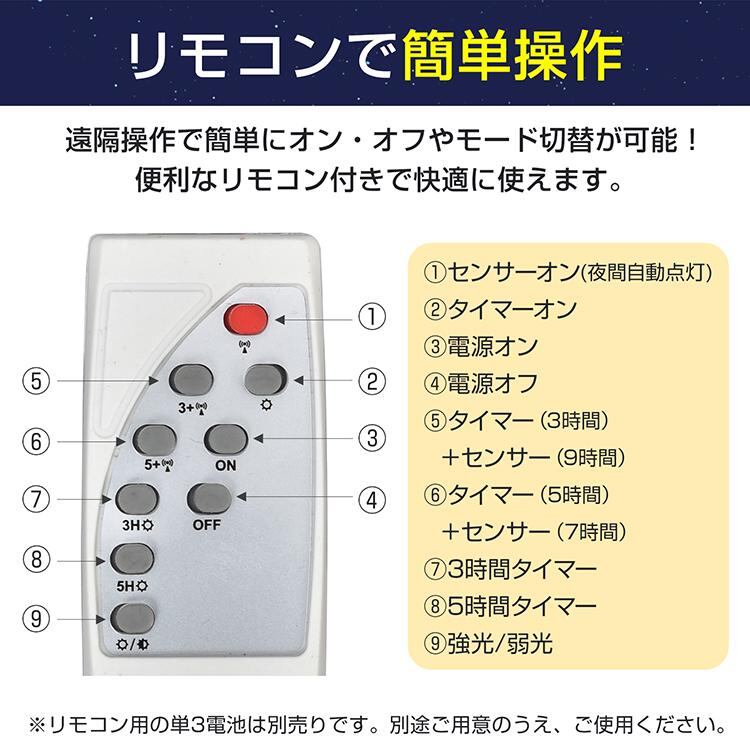 リモコン 外灯 ソーラーLED街灯 ガーデンライト センサーライト 充電 駐車場 防犯 照明 自動点灯 防水 防塵 #[sl105_56200]【送料込み】【251004】