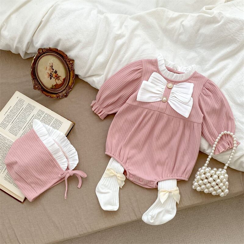 【海外からの取り寄せ】ins 秋新作 ベビー服 帽子付き 立ち襟 ロンパース 女の子 可愛い リボン カバーオール 子供服 #[ckd1095242_19900]【送料込み】【251102】