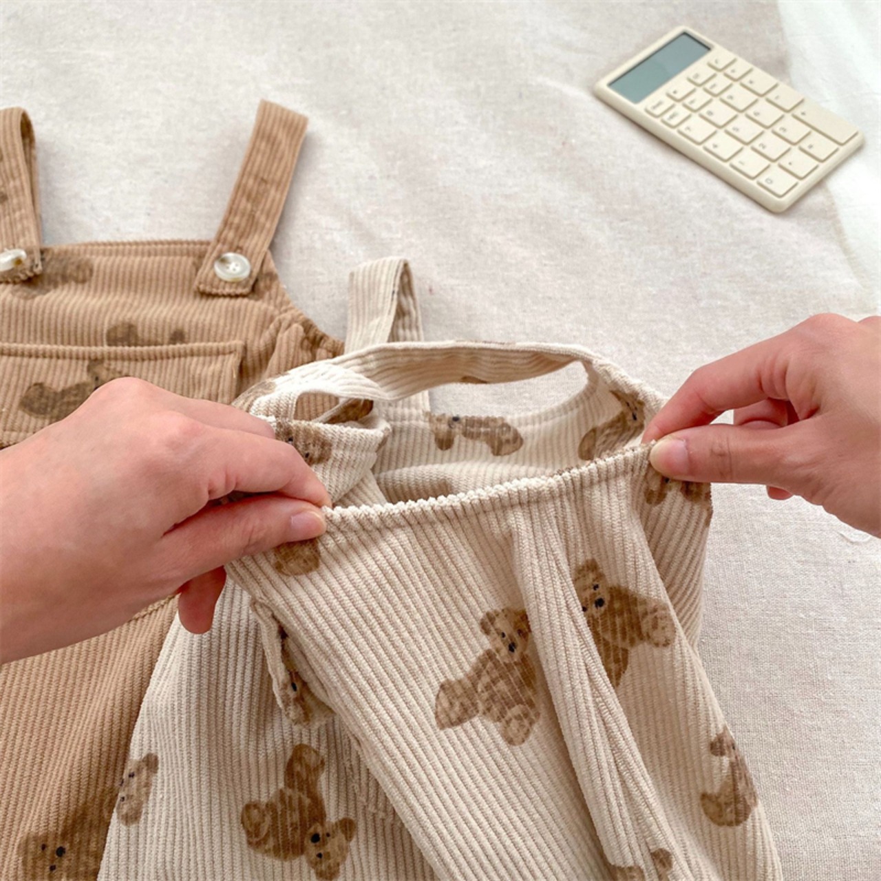 【海外からの取り寄せ】2025秋新作 子供服 コーデュロイ オーバーオール おしゃれ 可愛い クマ カジュアル ボトムス 2色 #[ckd1095241_17100]【送料込み】【251102】