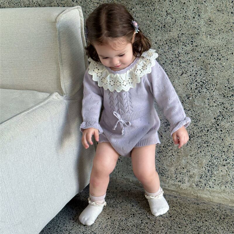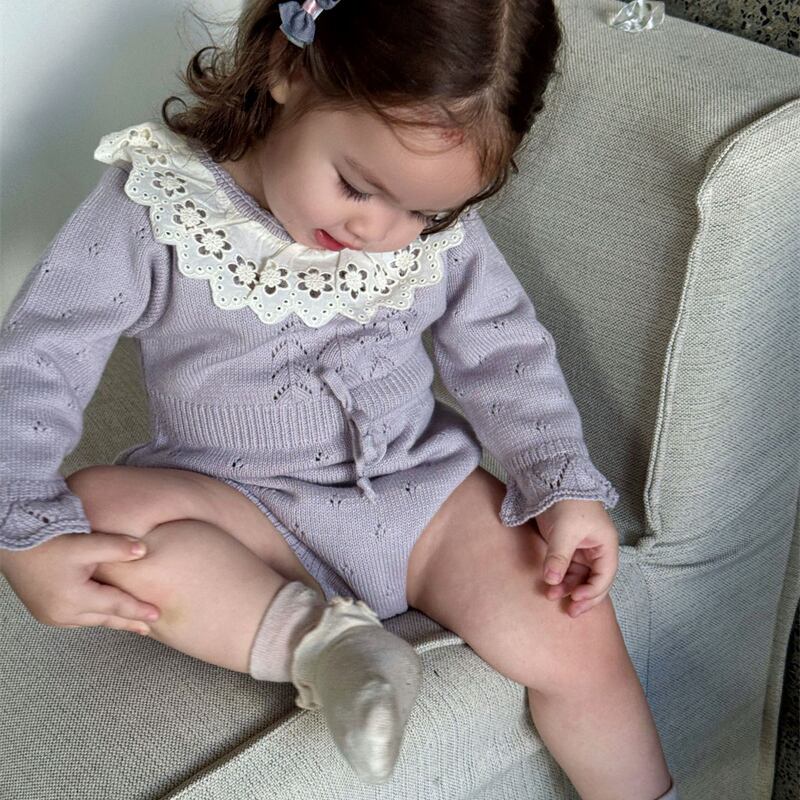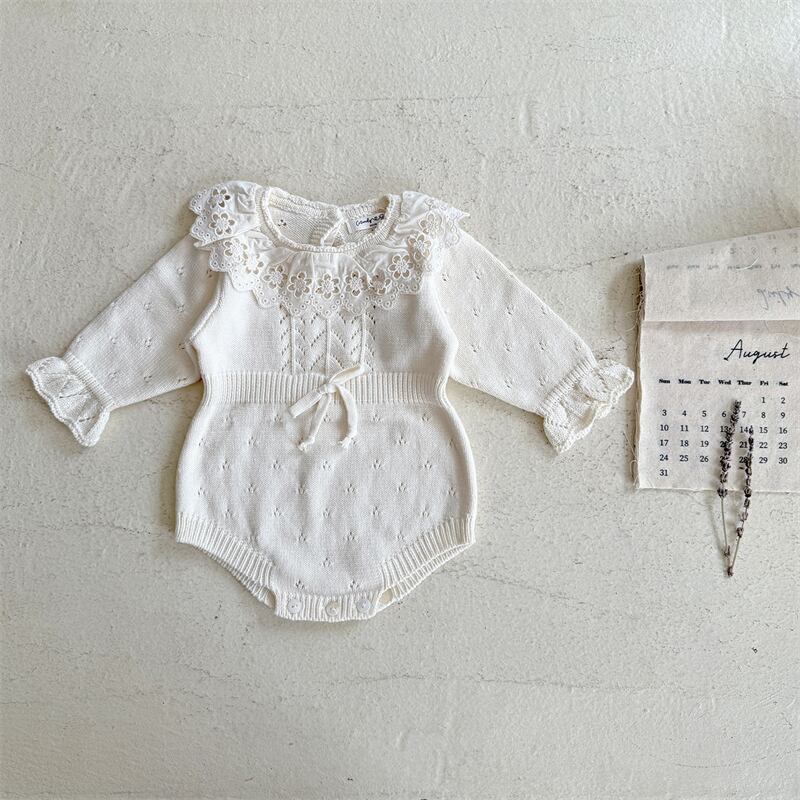 【海外からの取り寄せ】2025秋新作 ベビー服 レース ラッフルカラー ニット ロンパース 子供服 女の子 セーター 可愛い #[ckd1095238_21800]【送料込み】【251102】