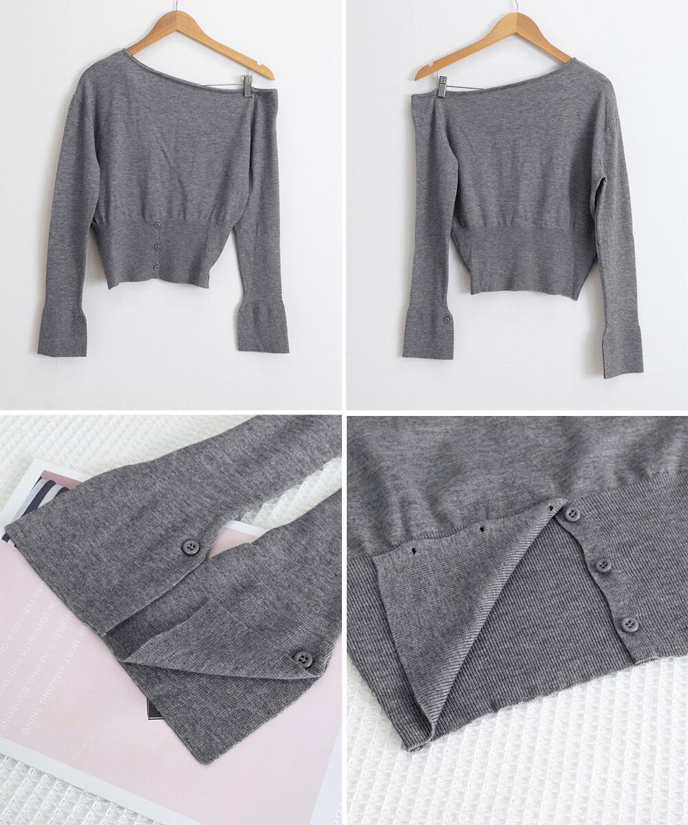 【日本倉庫からの発送】 ワンショルダーニットトップス裾ボタン秋服 #[24TPS-062_19500]【送料込み】【251016】