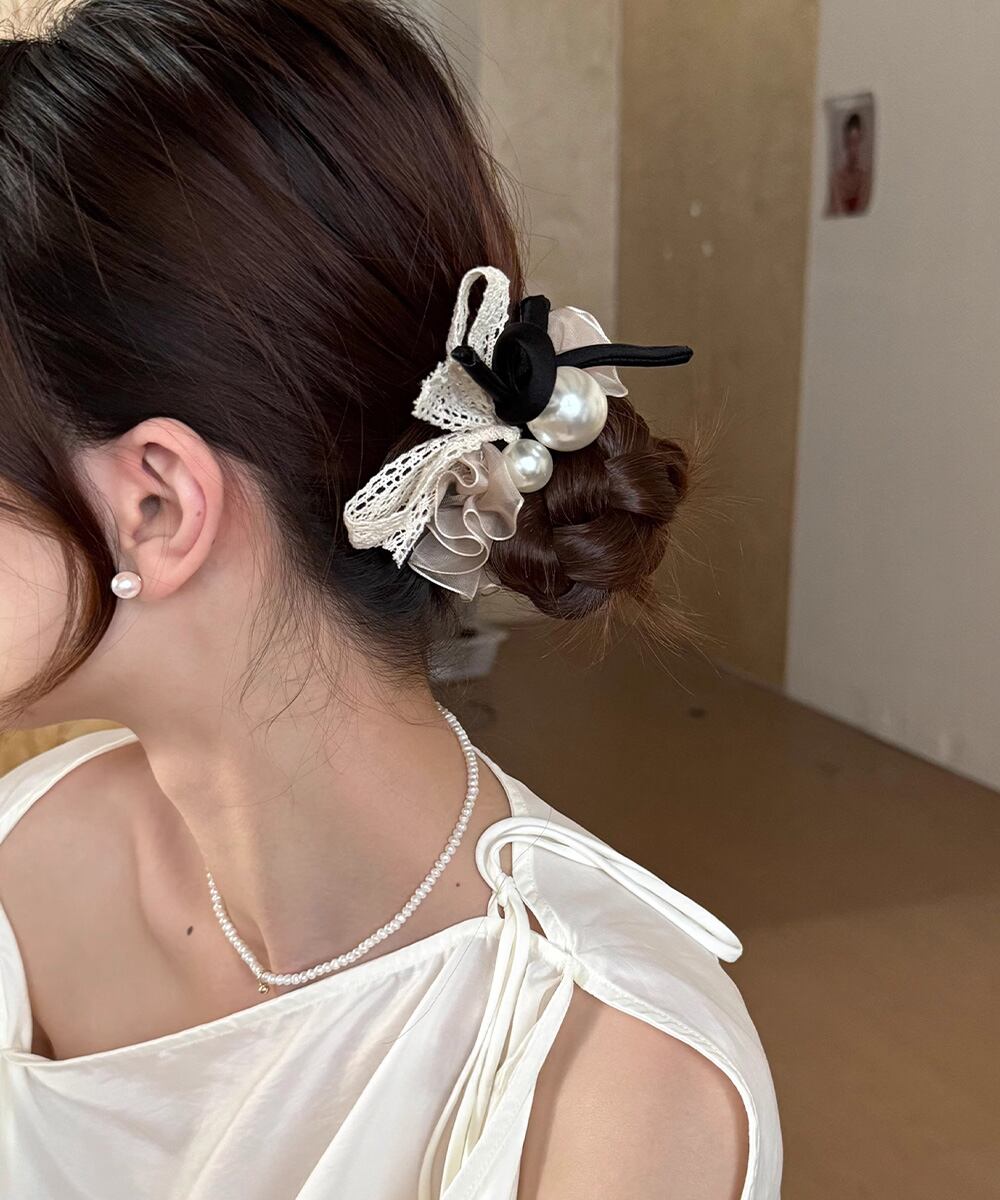 ひとつ結びやお団子にさっとつけるだけで、上品でフェミニンな印象に。