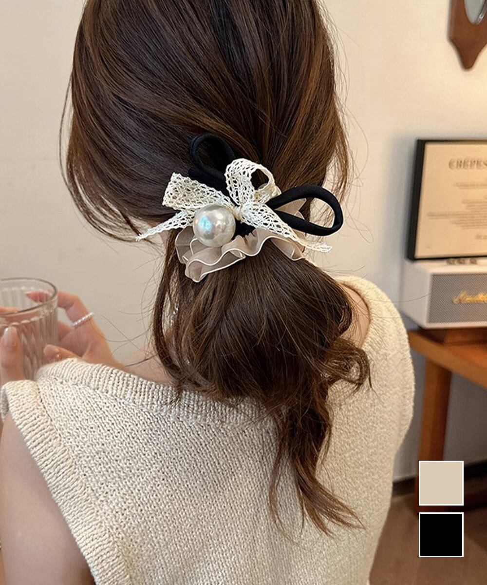 【日本倉庫からの発送】 ヘアゴム シュシュ レース蝶結び 韓国風 #[99JXSP-006_6400]【送料込み】【251022】