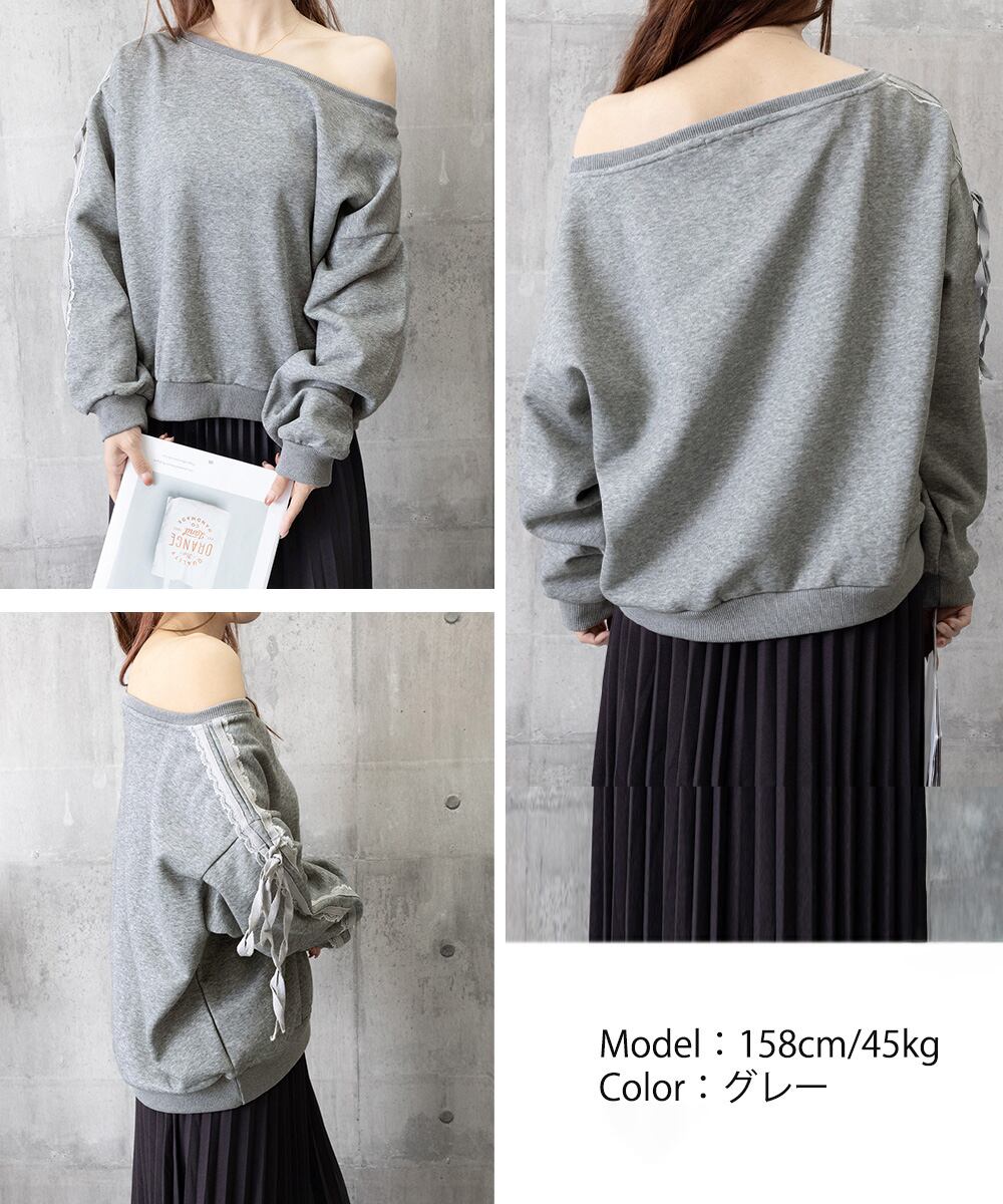 【日本倉庫からの発送】 オフショルダースウェット長袖レースリボン #[90CHENXINI-027_26100]【送料込み】【251022】