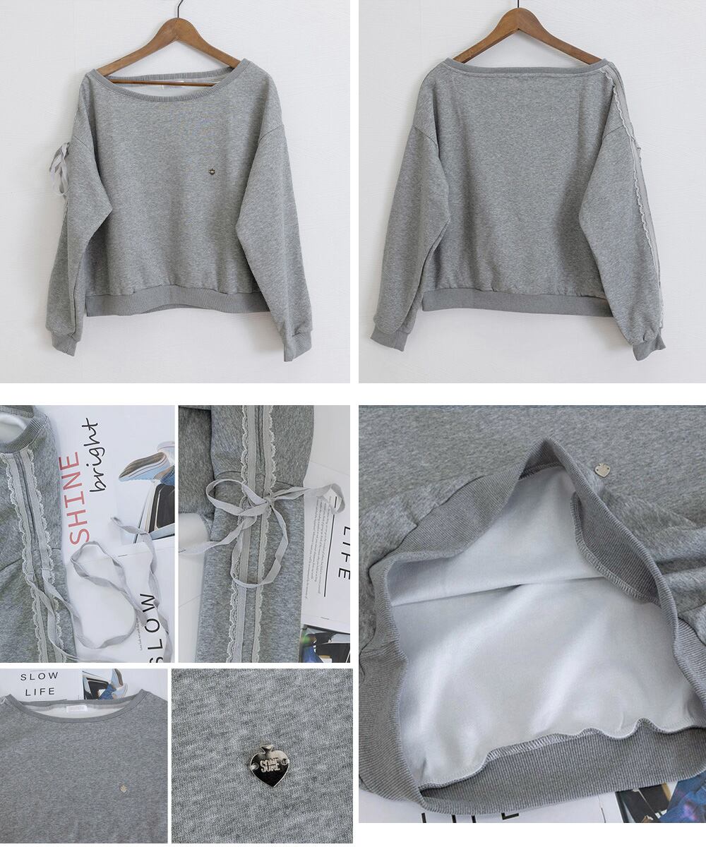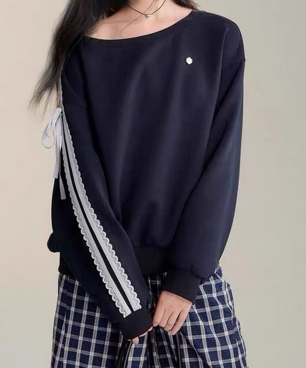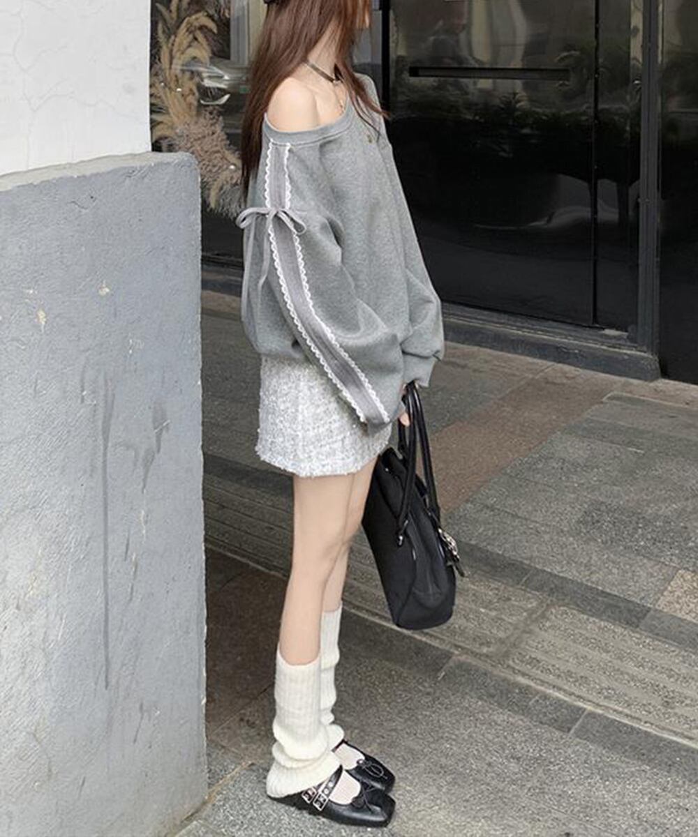 【日本倉庫からの発送】 オフショルダースウェット長袖レースリボン #[90CHENXINI-027_26100]【送料込み】【260115】